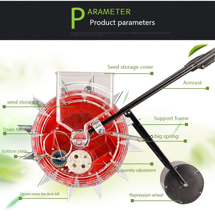 Planting machinery for planting seeds into holes according to a certain row spacing and hole spacing. One or several seeds can be sown in each hole, which are called single-grain precision seeding or multi-grain hole seeding respectively. Each seeder unit can complete the entire operation process of ditching, seeding, covering soil, and pressing.